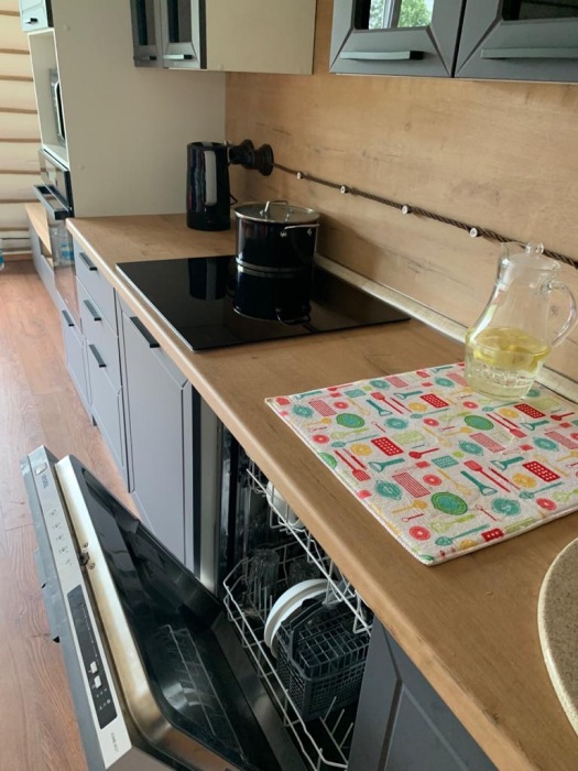 В доме есть вся необходимая техника: холодильник, индукционная плита, микроволновая печь, стиральная машина, посудомоечная машина, интернет, WI-FI и т.д.