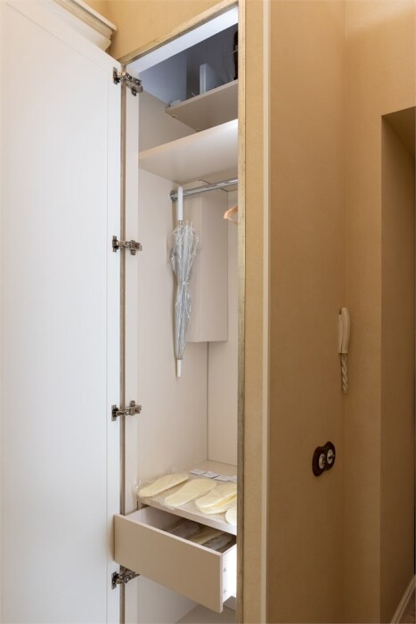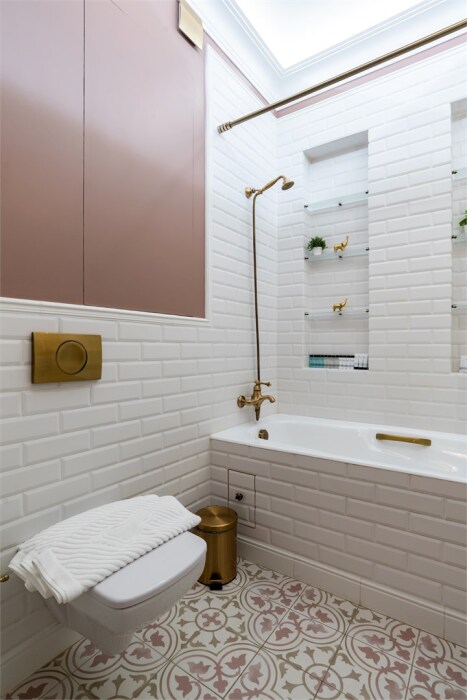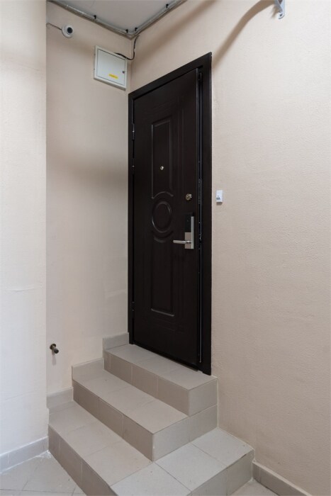 Площадь квартиры - 40м2, высота потолков - 3 м. В квартире есть прихожая, кухня-гостиная, ванная комната и спальня: