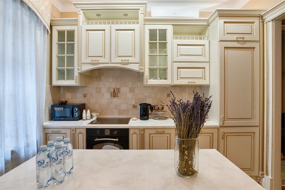 Квартира полностью оборудована всей необходимой мебелью и техникой: стиральная машина, холодильник, чайник, электрическая плита и духовой шкаф, посудомоечная машина, кофемашина, кондиционер, утюг, гладильная доска, фен, телевизор. Предоставляется: косметические средства, халаты, банные полотенца, тапочки.