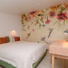 Уютная спальная зона с двуспальной кроватью (160х200), письменным столом и креслом для работы.