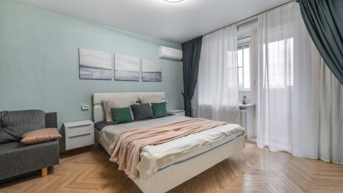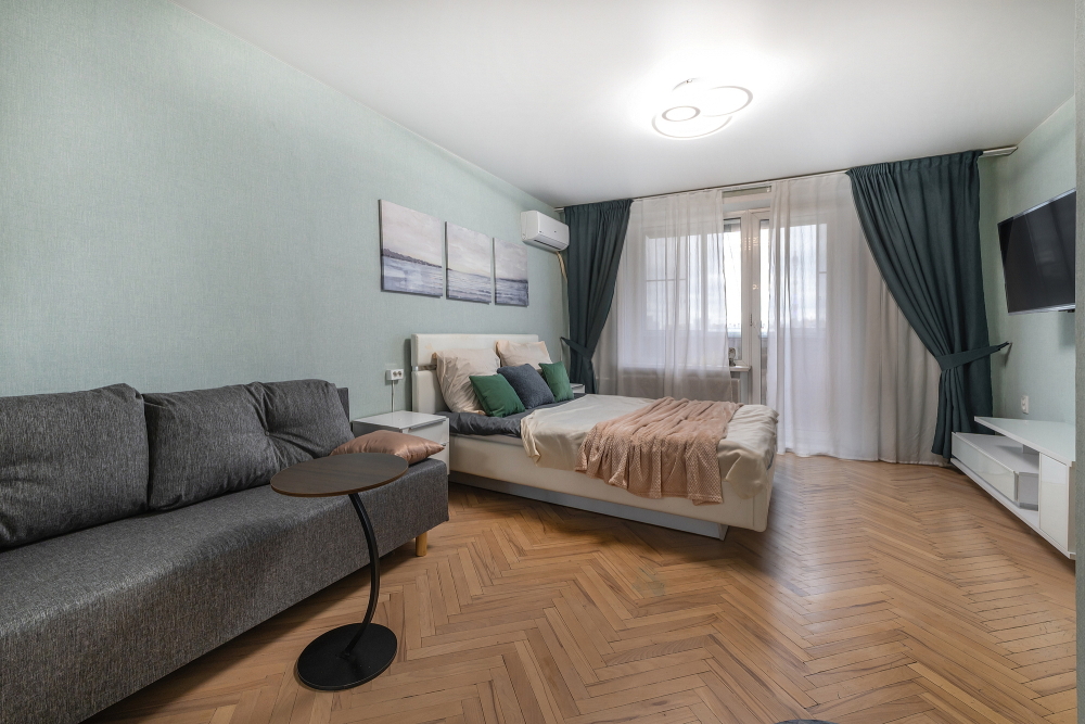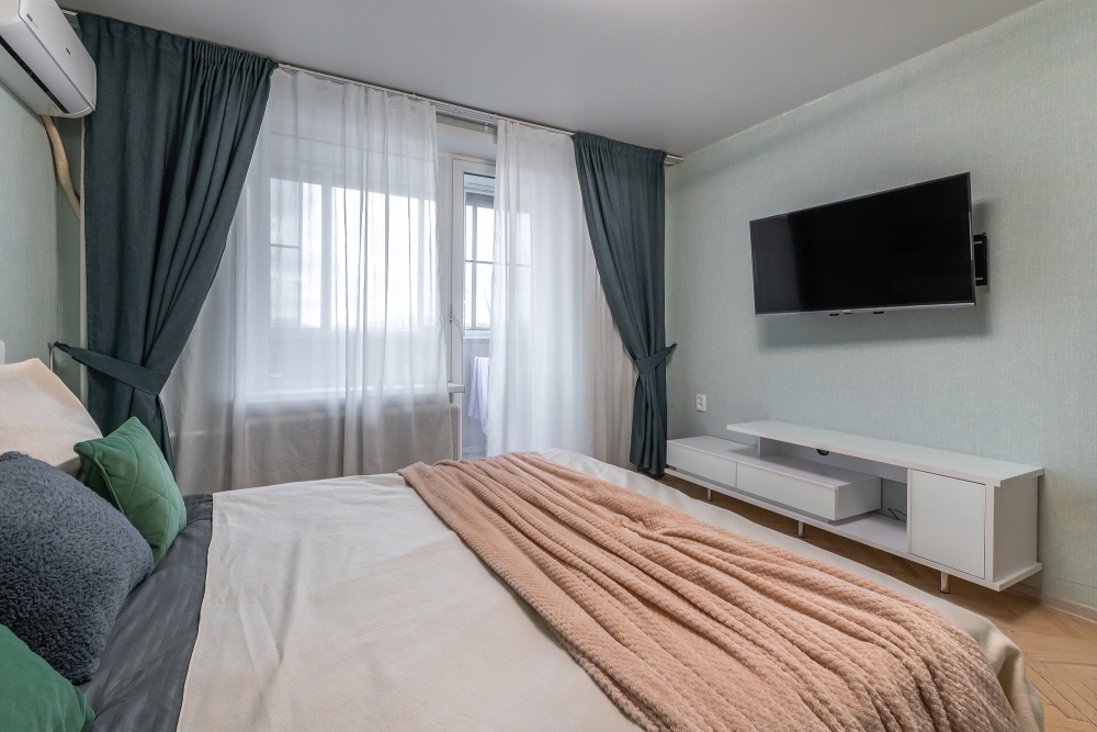 Светлая и невероятно уютная однокомнатная квартира с дизайнерским ремонтом. Вас ждет просторная комната с двуспальной кроватью (орто-матрас 160x200 см) и раскладной диван для гостей, полностью оборудованная кухня и современная техника.