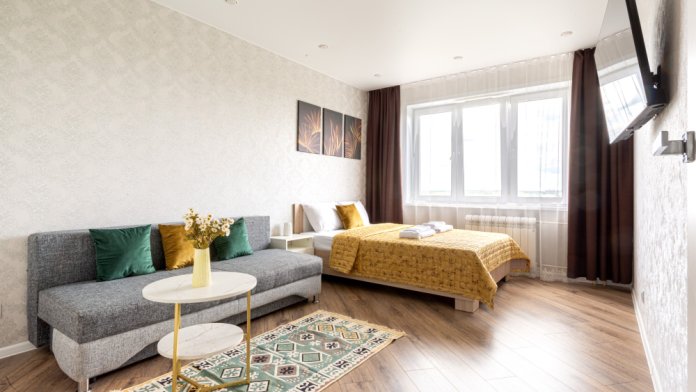 Апартаменты расположены в новом микрорайоне «Солнечный». Это чистый район в природной зоне.