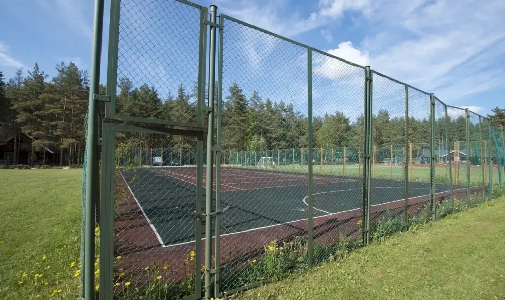Волейбольная площадка, баскетбольные кольца, настольный теннис, детская площадка.