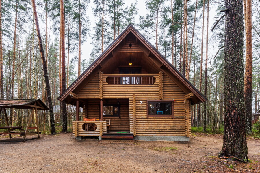 Предлагаем 5 одинаковых бревенчатых домиков, оснащённых сауной, камином, бытовой техникой. Все дома отапливаются. Рядом c каждым домом беседка и мангал, парковка для двух машин.