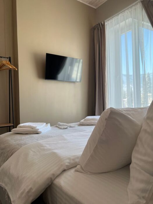 Гостевой комплекс Джаст Барн готов принять гостей и обеспечить им качественный отдых. Местоположение отличное. 1,5 км от сектора Б (горнолыжного склона), подъезд ровный, вид на гору Зеленая и Мустаг.