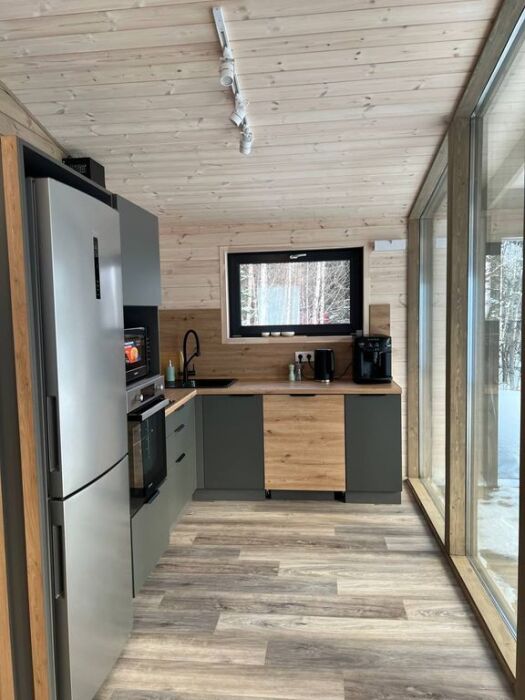 Оснащен всем самым необходимым для проживания, плюс добавили камин для уютного уюта и зимней атмосферы)
