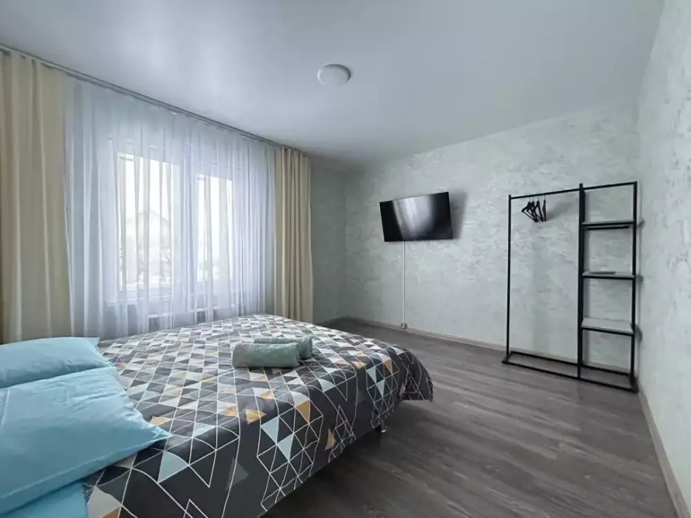 Гостиная с раскладным диваном и кухонной зоной. Спальня с просторной двуспальной кроватью. Санузел и душ.