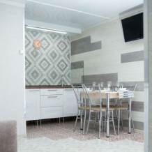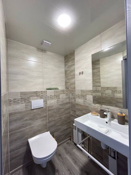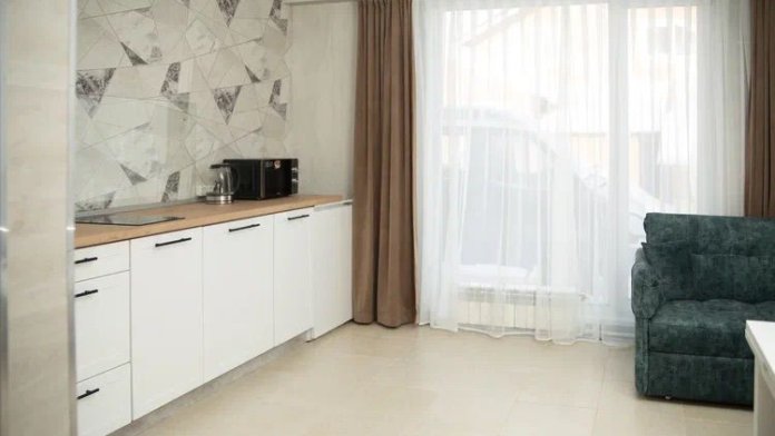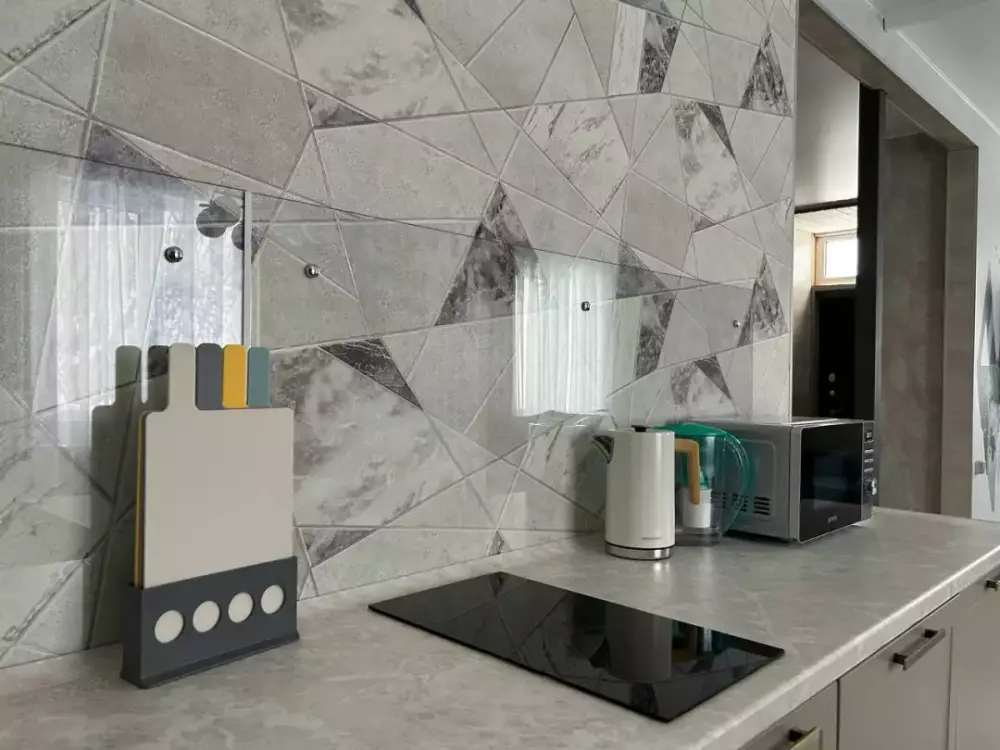 Coвpeмeнная куxня c встpоeнной теxникoй: варочная панель, холодильник, СВЧ-печь, стиральная машина, вытяжка, чайник. К вашему распоряжению вся необходимая посуда для приготовления пищи и сервировки.