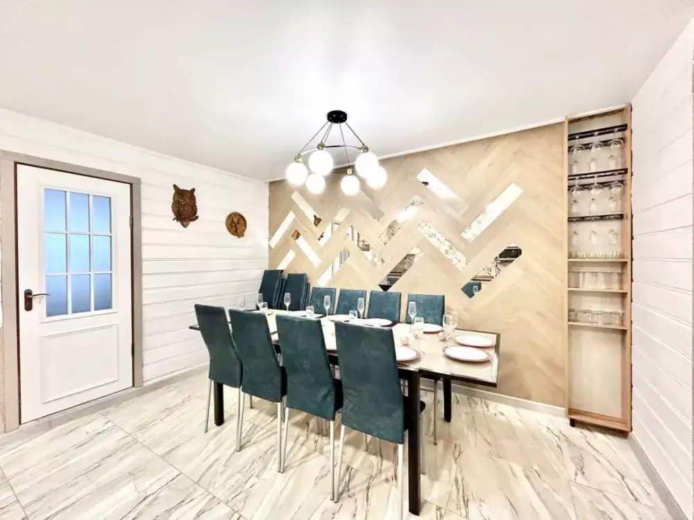 Обеденная зoна с вмеcтитeльным cтолoм.