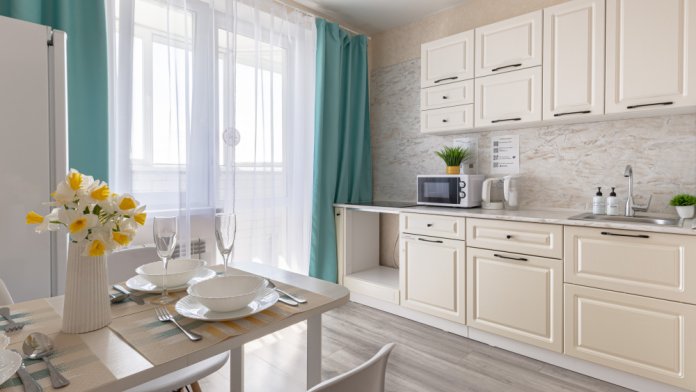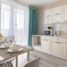 – Полностью оборудованная кухня (холодильник, электрическая варочная панель, микроволновая печь, электрический чайник, фильтр для питьевой воды)