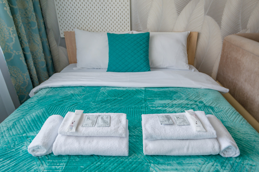 – Белоснежные комплекты постельного белья и полотенец после прачечной, одноразовые тапочки, гигиенические наборы.
