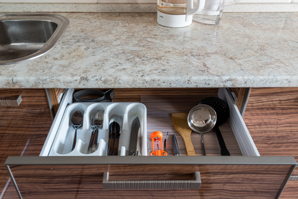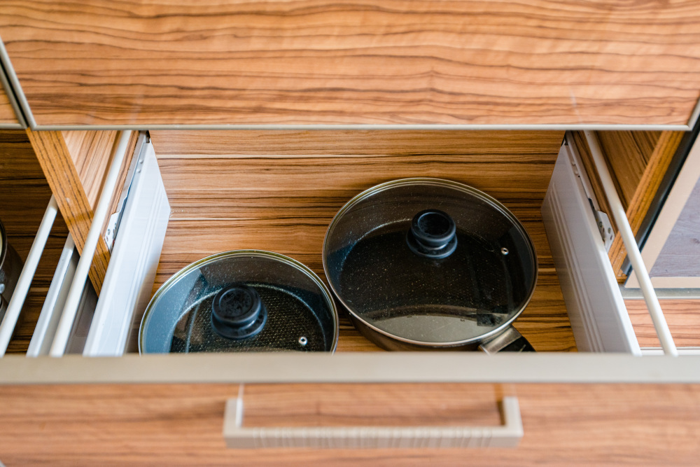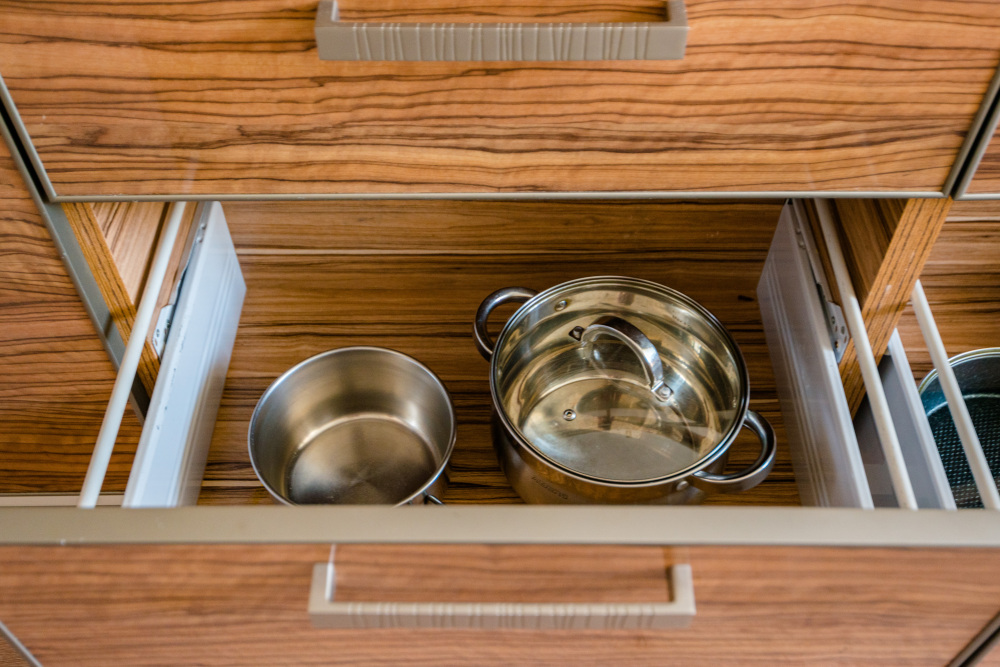 – Посуда, столовые приборы, кастрюли и сковороды