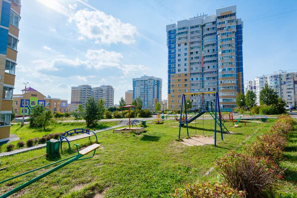 Апартаменты расположены в новом благоустроенном микрорайоне «Радужный» города Чебоксары в непосредственной близости от живописной набережной залива и Чувашского государственного университета.