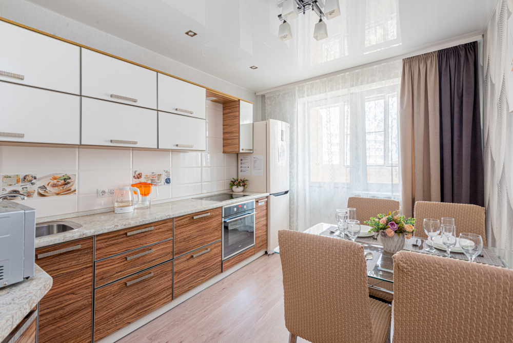 – Полностью оборудованная кухня (холодильник, газовая плита с духовкой, микроволновая печь, электрический чайник, фильтр для питьевой воды)