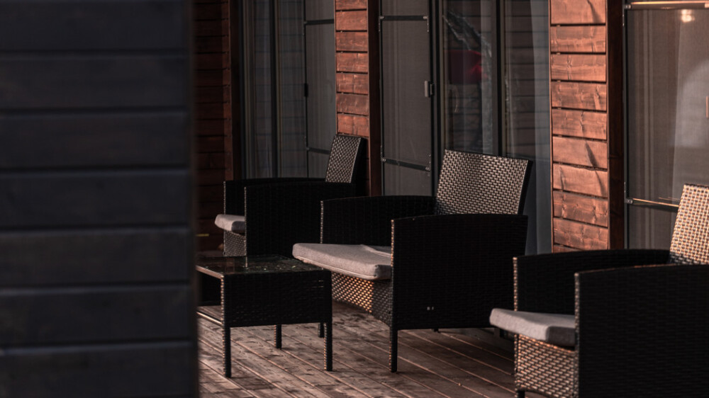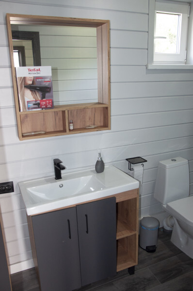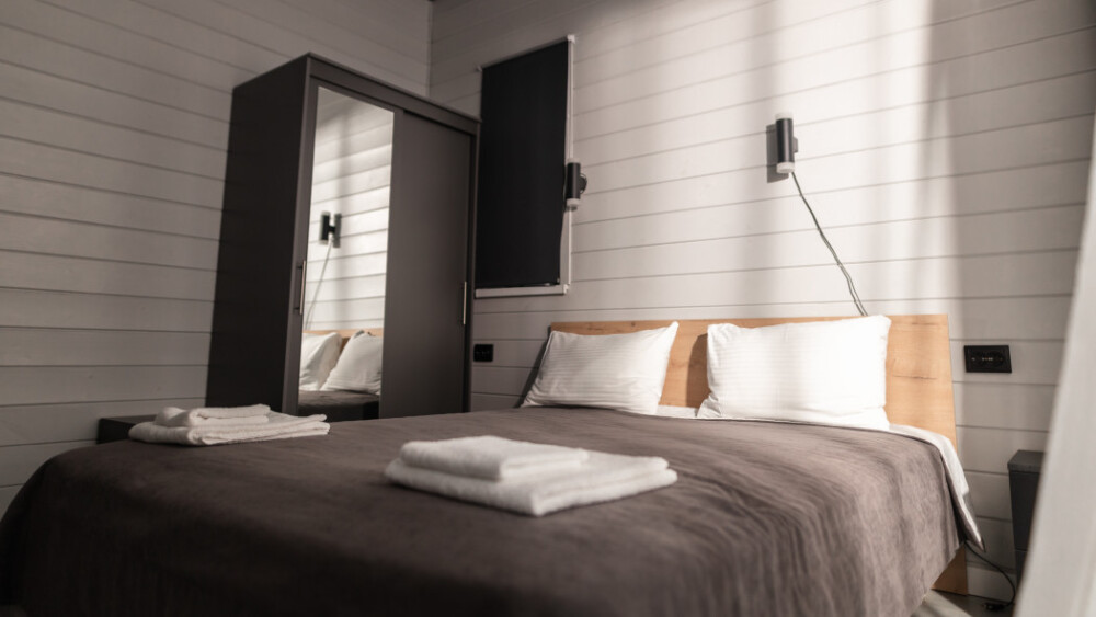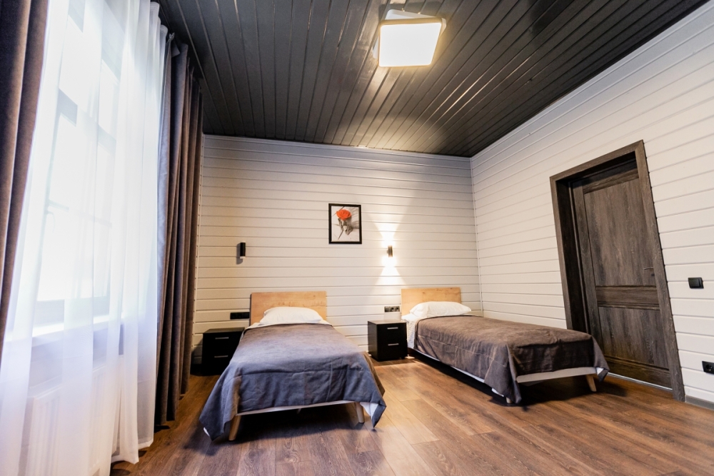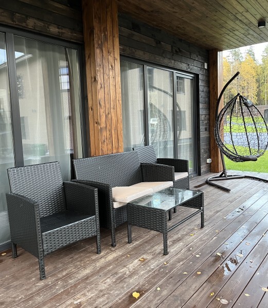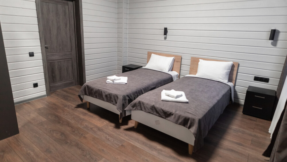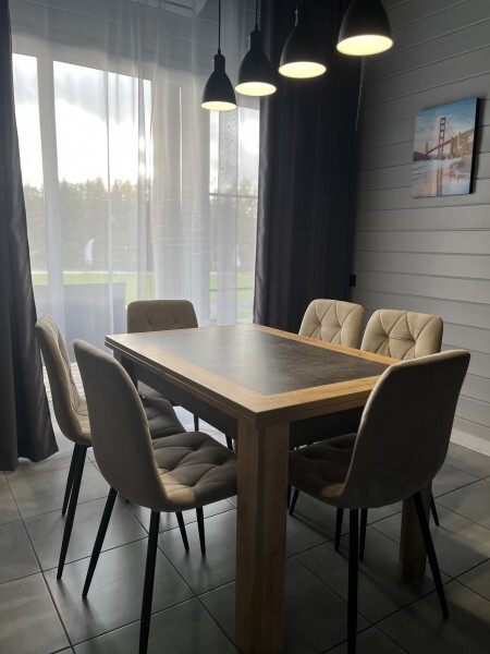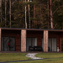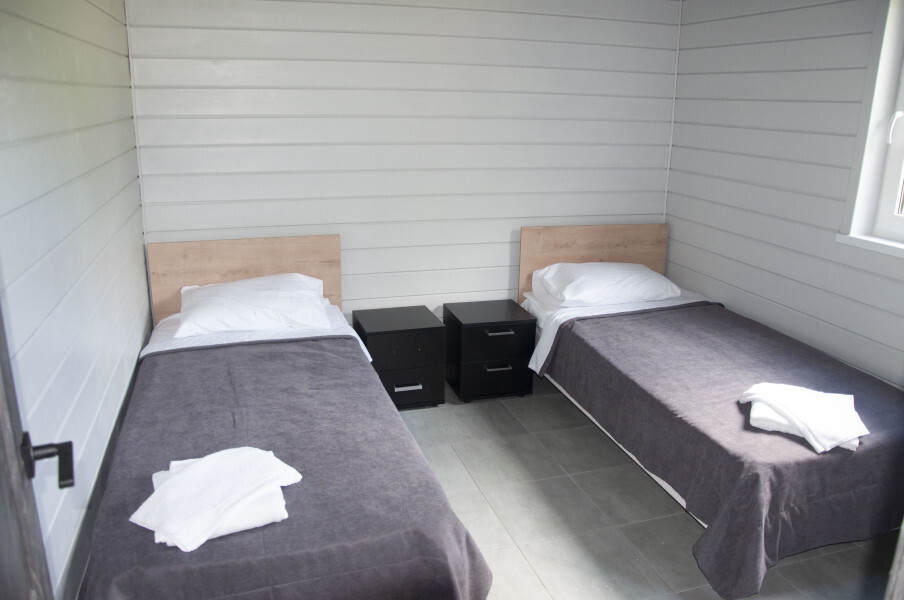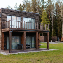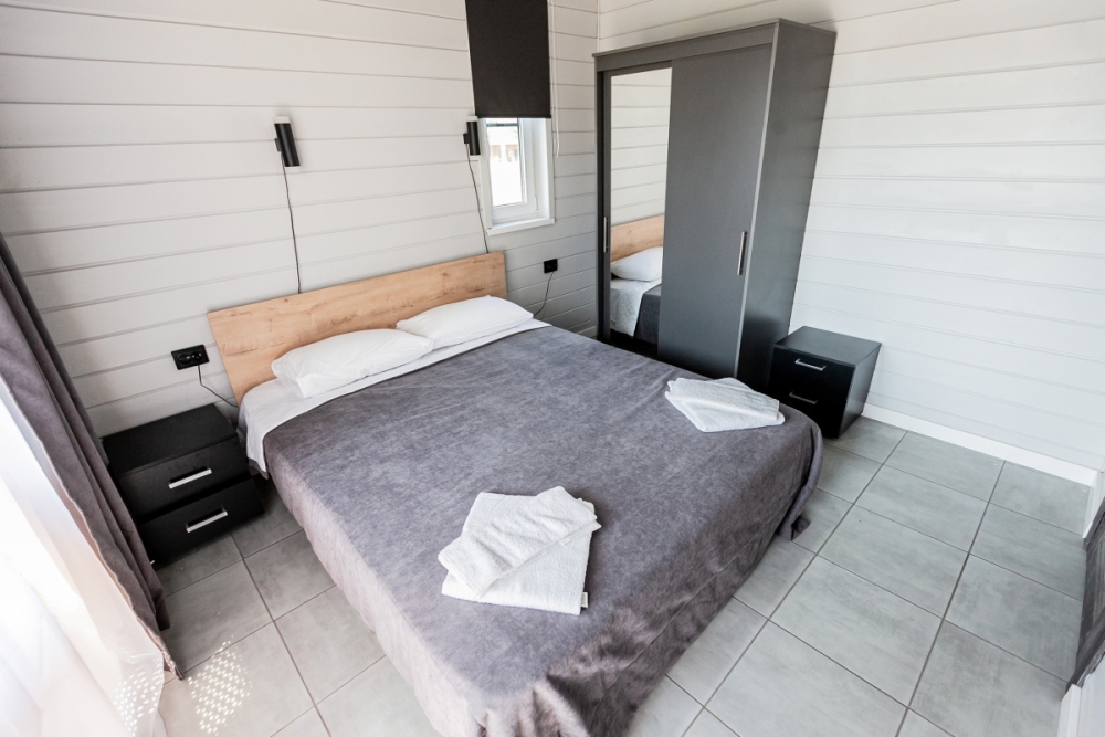 Уютный двухэтажный домик из четырёх комнат, с гостиной и двумя террасой с видом на озеро. В доме имеется оборудованная кухня с посудой, микроволновка, чайник. Обеденный стол на 6 персон. Спутниковое ТВ и Wi-Fi. Четыре двуспальные кровати и раскладной диванчик, с возможностью организации ещё двух дополнительных спальных мест. Два санузла. Кондиционер, или тёплый пол, обеспечат комфортную температуру в любое время года.