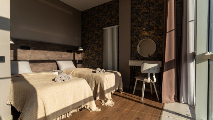 - просторные спальни с комфортными кроватями для двоих и уютный диван в гостиной;