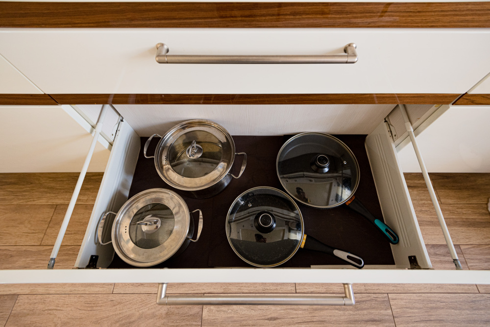 – Посуда, столовые приборы, кастрюли и сковороды