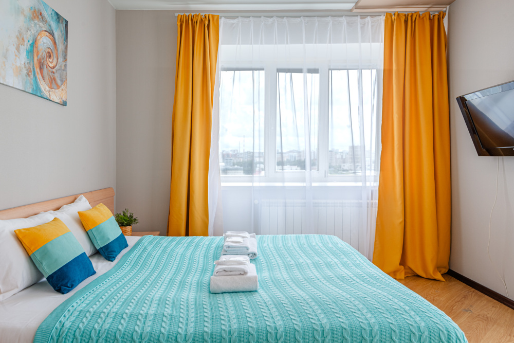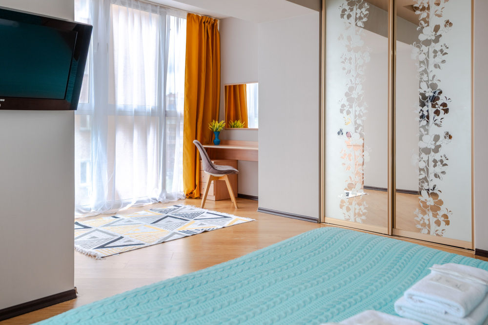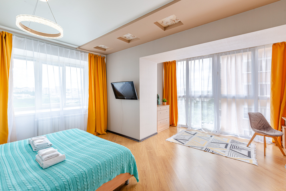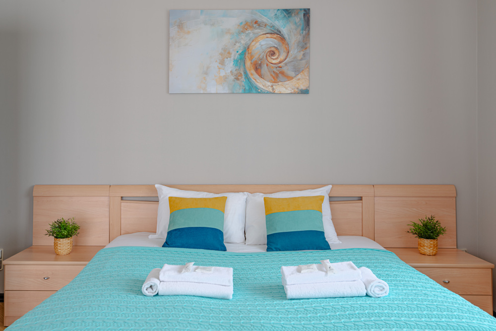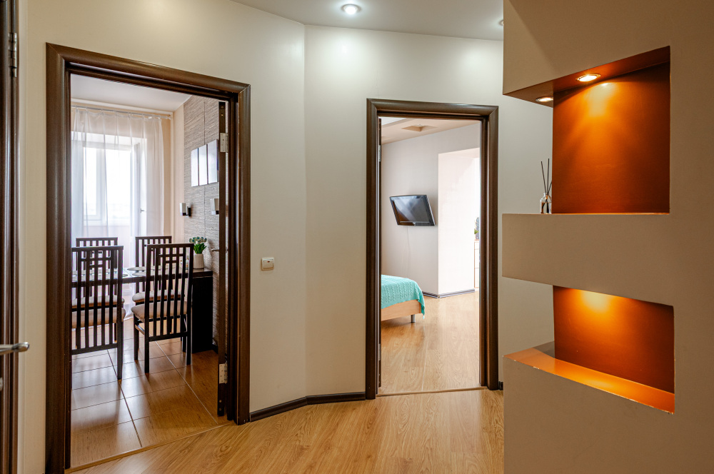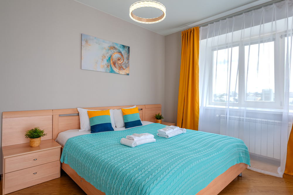 Двухкомнатные апартаменты расположены у набережной залива в непосредственной близости от центральной деловой и исторической части города.