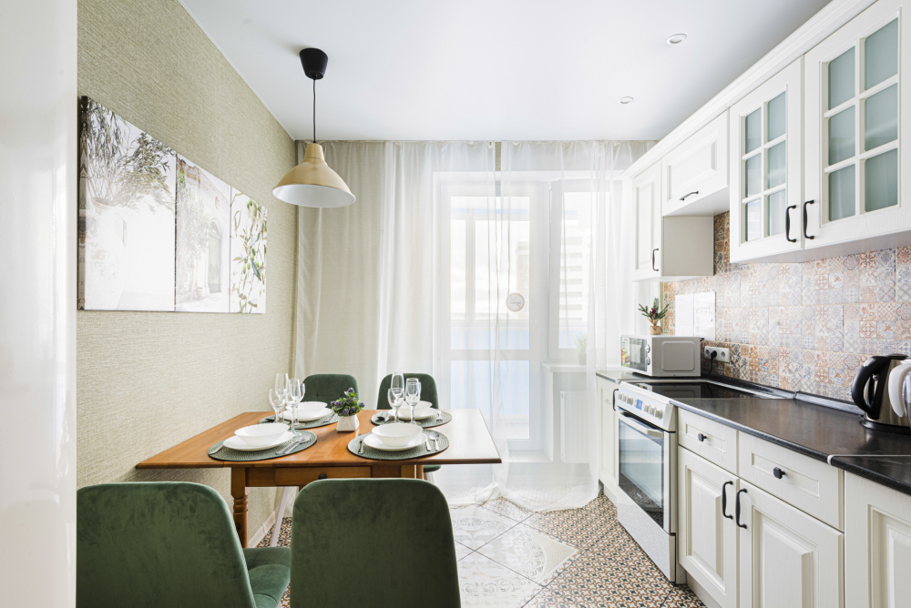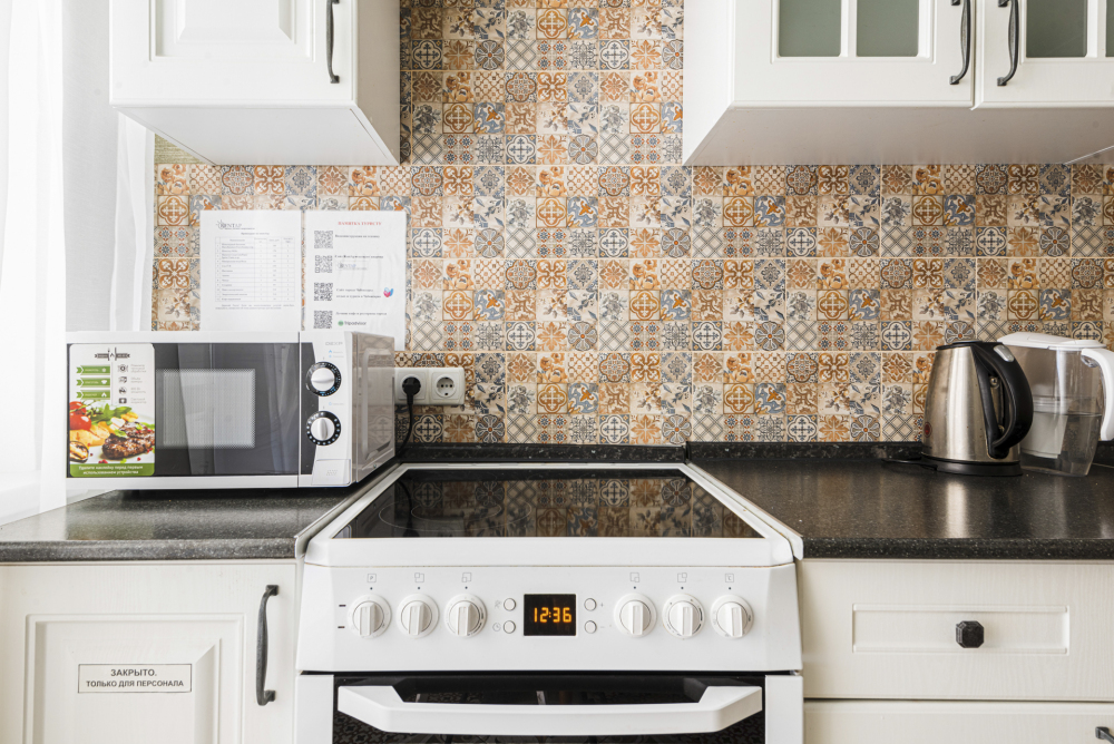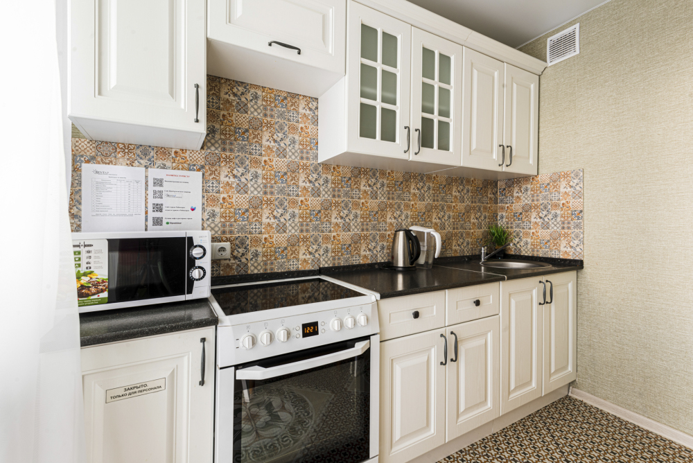 – Полностью оборудованная кухня (холодильник, электрическая плита с духовкой, микроволновая печь, электрический чайник, фильтр для питьевой воды)