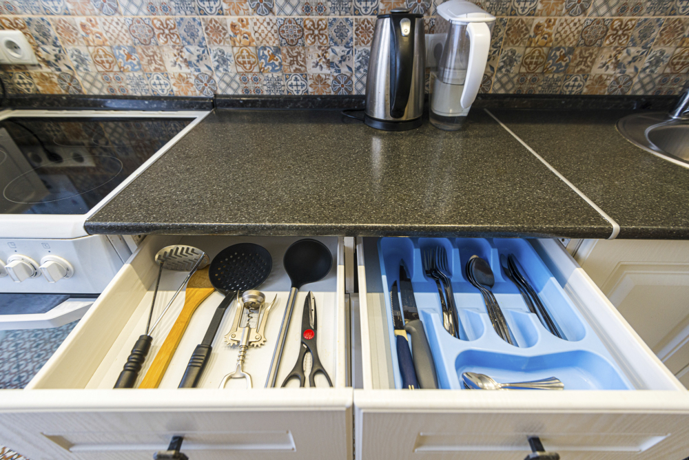 – Посуда, столовые приборы, кастрюли и сковороды