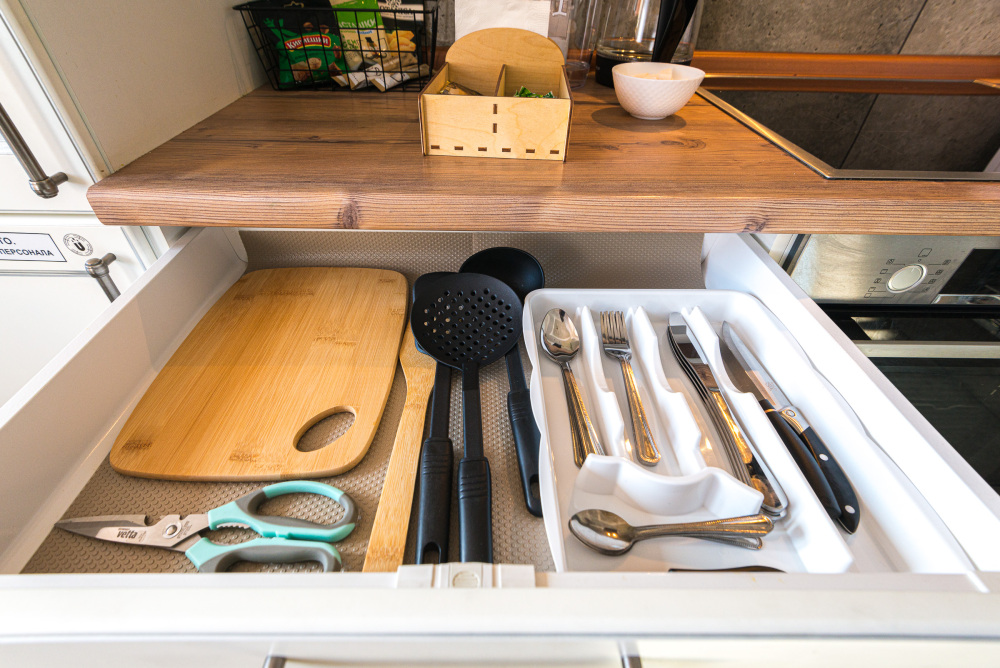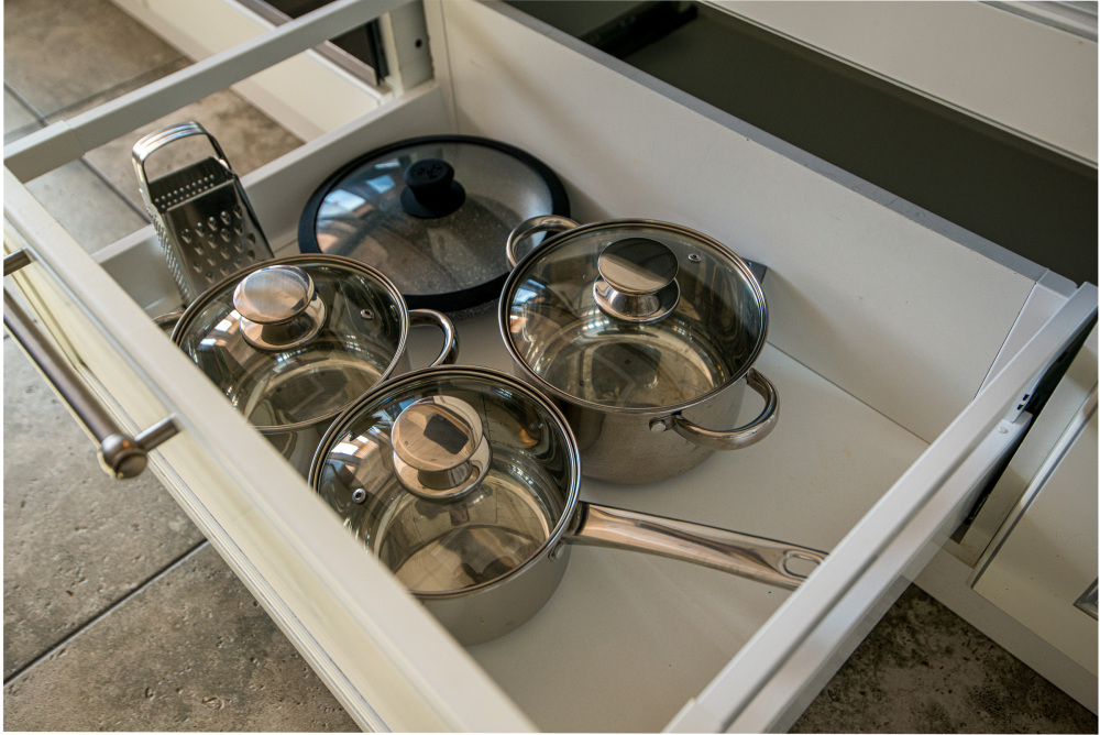 – Посуда, столовые приборы, кастрюли и сковороды