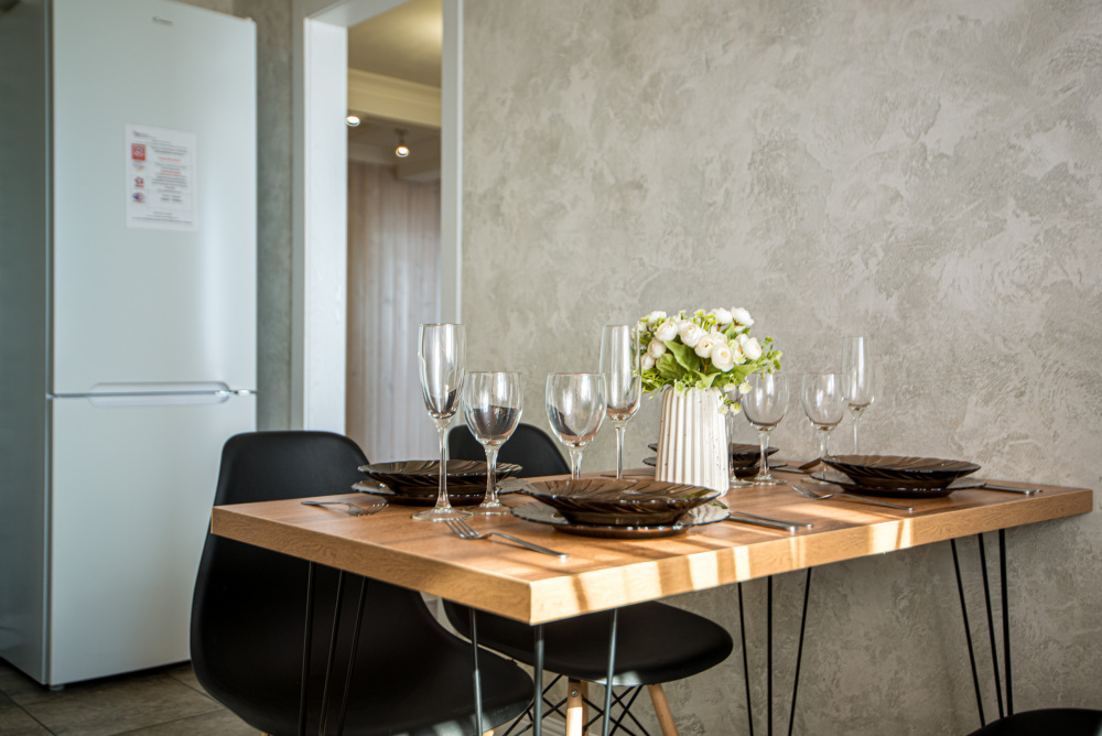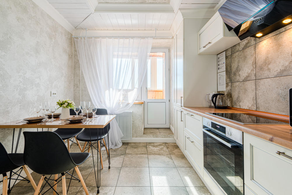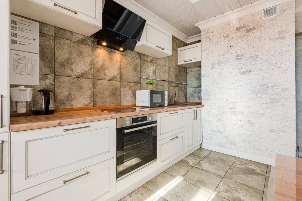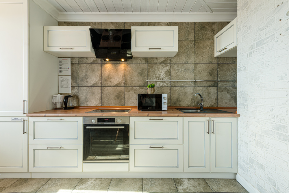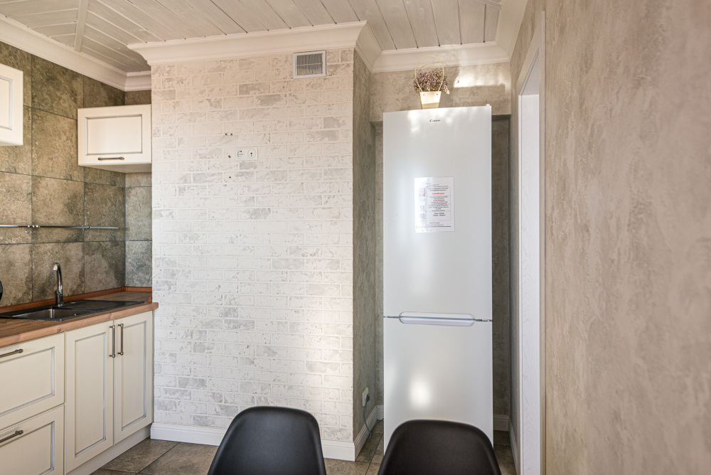 – Полностью оборудованная кухня (холодильник, индукционная варочная панель, духовой шкаф, вытяжка, микроволновая печь, электрический чайник, фильтр для питьевой воды)