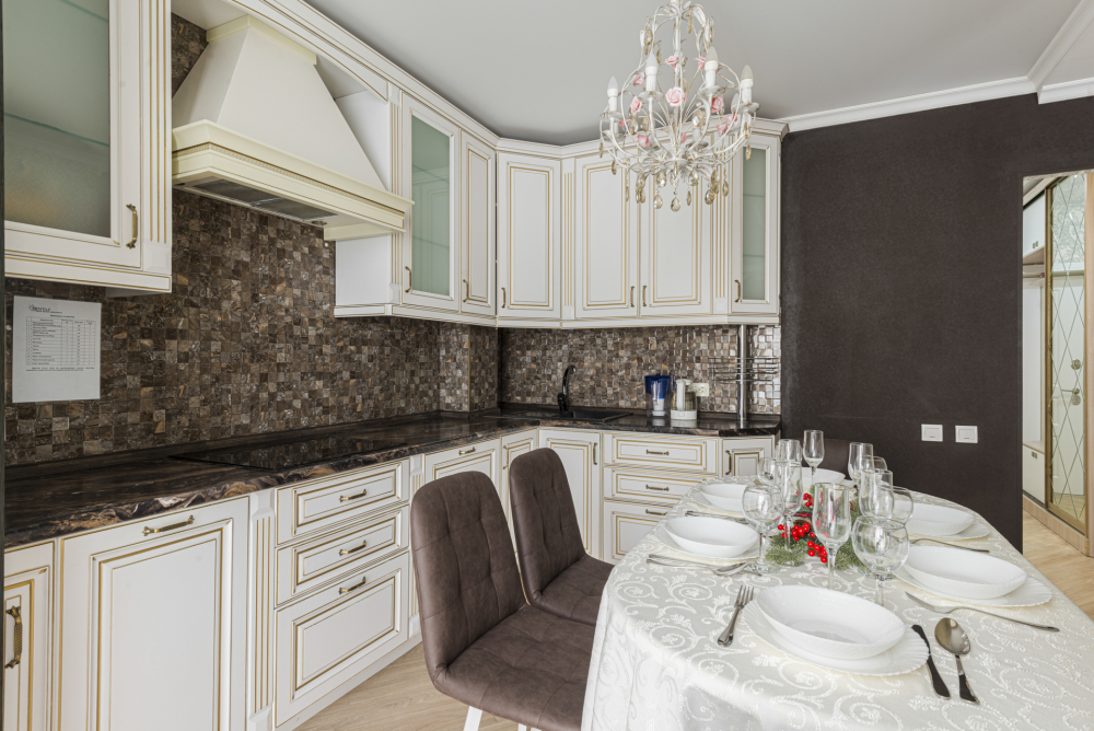 – Полностью оборудованная кухня (холодильник, индукционная варочная панель, духовой шкаф, посудомоечная машина, микроволновая печь, электрический чайник, фильтр для питьевой воды)