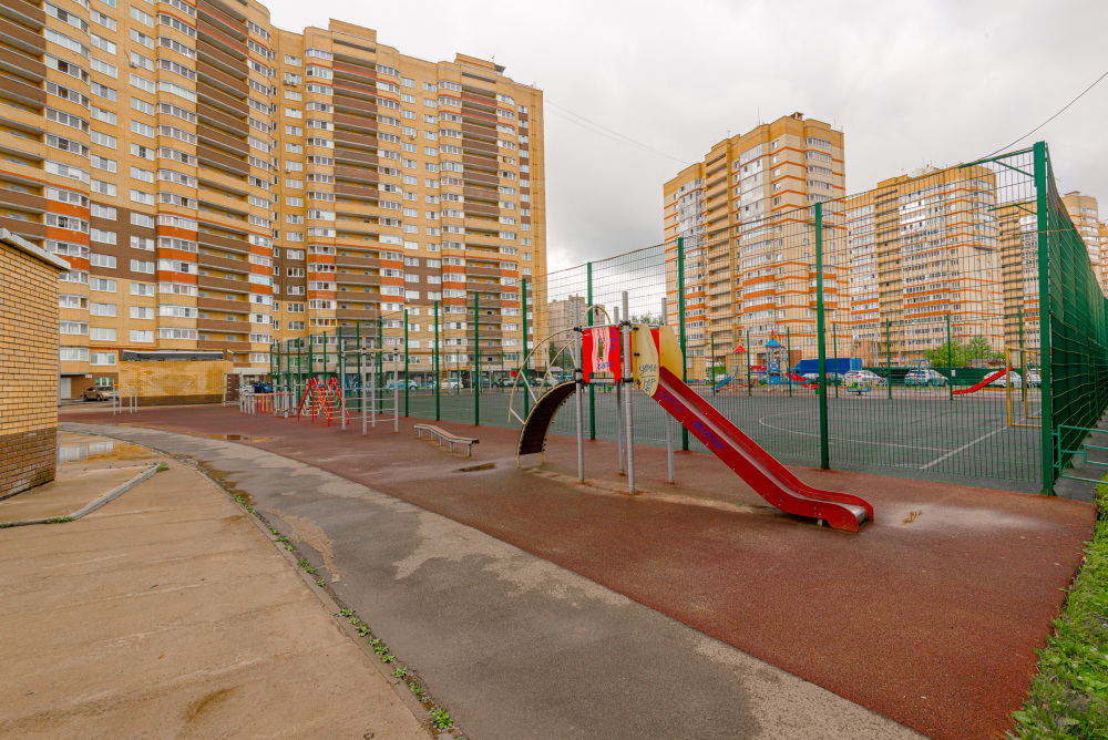 Во дворе дома находится удобная парковка и новая современная детская площадка .