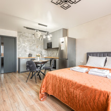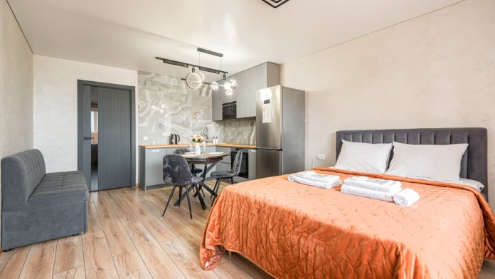 Современная студия на 3 спальных места (2+1) располагается в новом популярном микрорайоне «Кувшинка».