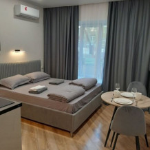 - Одноразовые тапочки, халат, дополнительная уборка в период проживания, обновление постельного белья и полотенец;