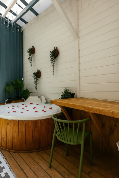 Джакузи под крышей - комфортно даже в дождь и прохладу.