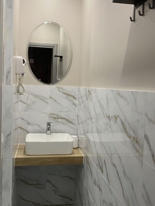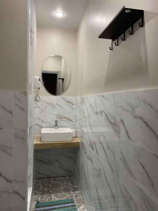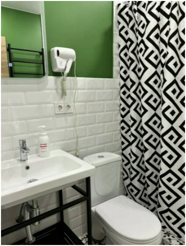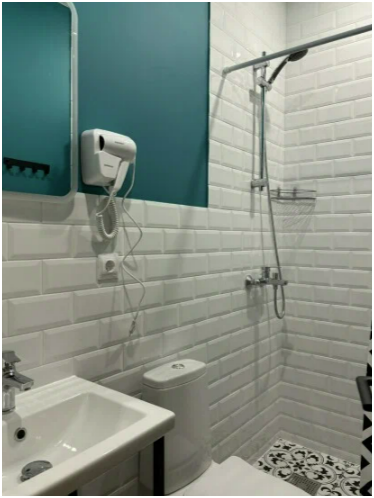 Двухместный номер категории Комфорт, душевая и санузел в номере. Возможно размещение до 3-х взрослых, либо 2 взрослых и ребенок.