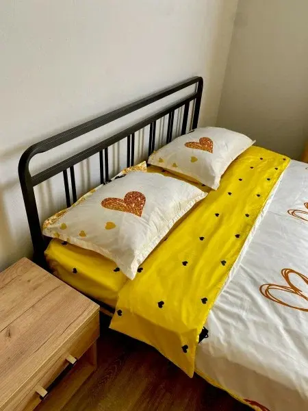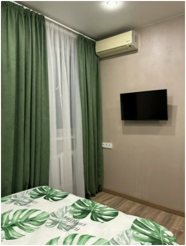 Двухместный номер категории Комфорт. Номер оснащен одной двуспальной кроватью, туалетным столиком, тумбой. В номере своя душевая и санузел, фен.