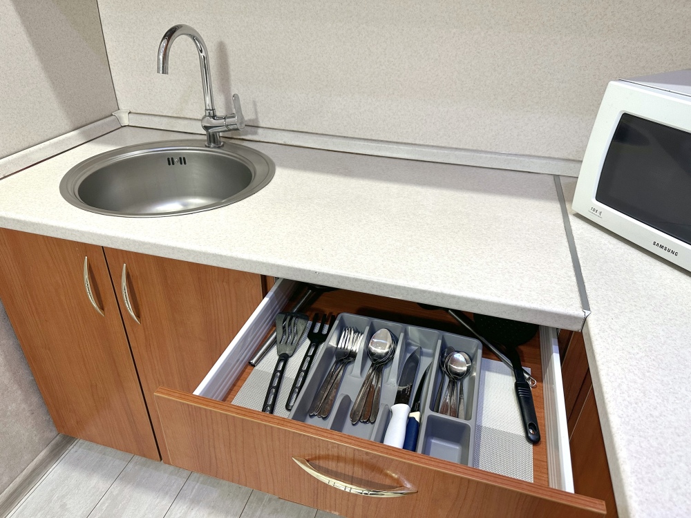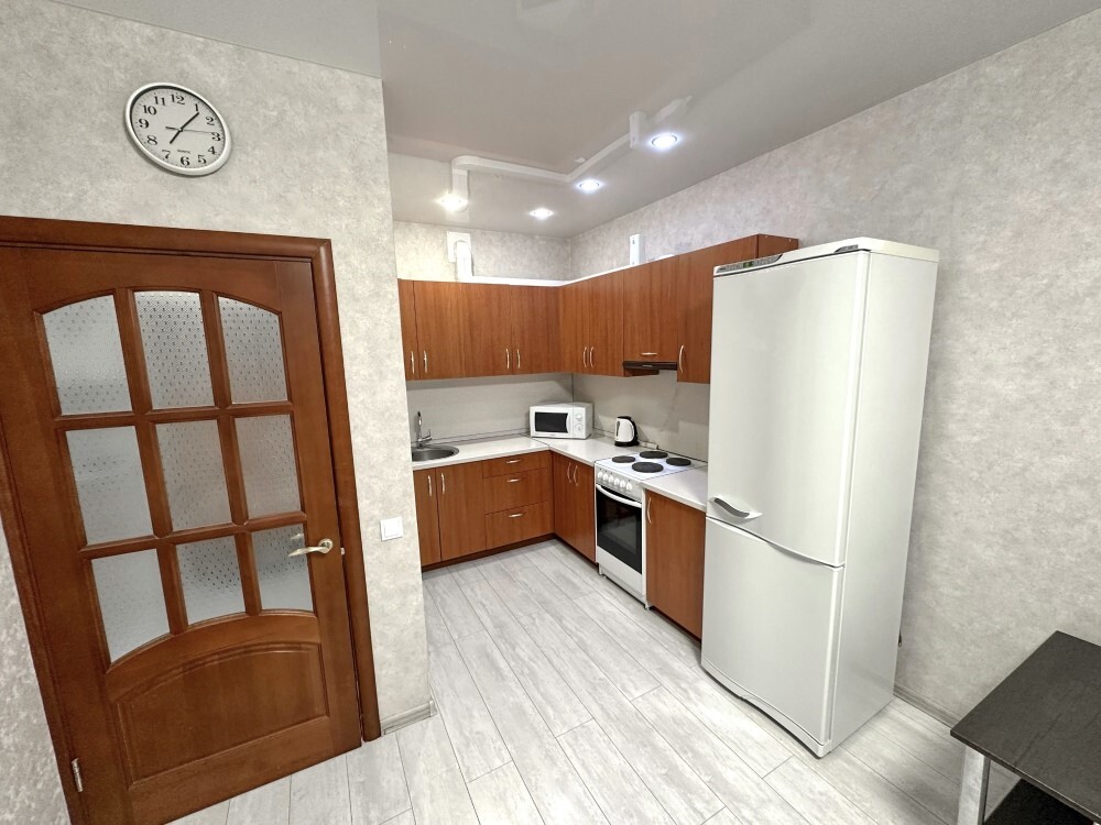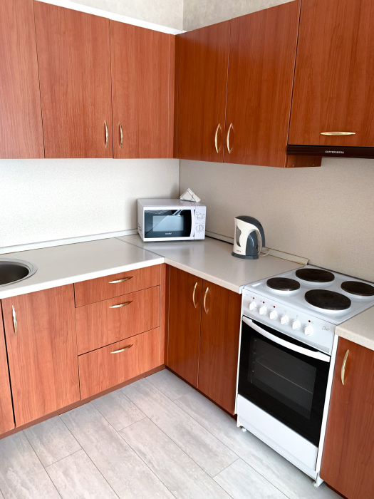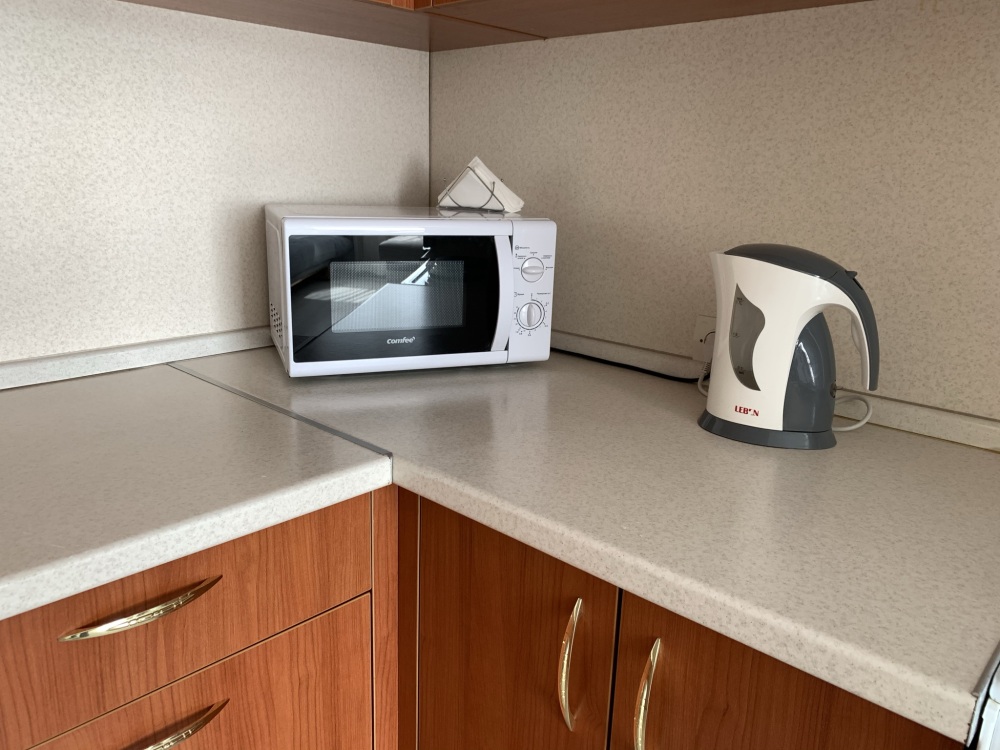 В квартире вся необходимая мебель и техника: плита, кухонные принадлежности, посуда, утюг, телевизор, свч-печь, стиральная машина.