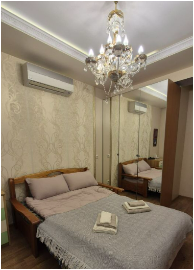 В квартире есть все необходимое для комфортного проживания: 2 кондиционера, холодильник, электрическая варочная панель, микроволновка, стиральная машина, фен, утюг, телевизор с подписками и wi-fi для Вашего удобства. Спальные места: удобный двуспальный диван-кровать и односпальная кровать, также имеется раскладушка. Полотенца, постельное бельё, гель для душа, средства гигиены.