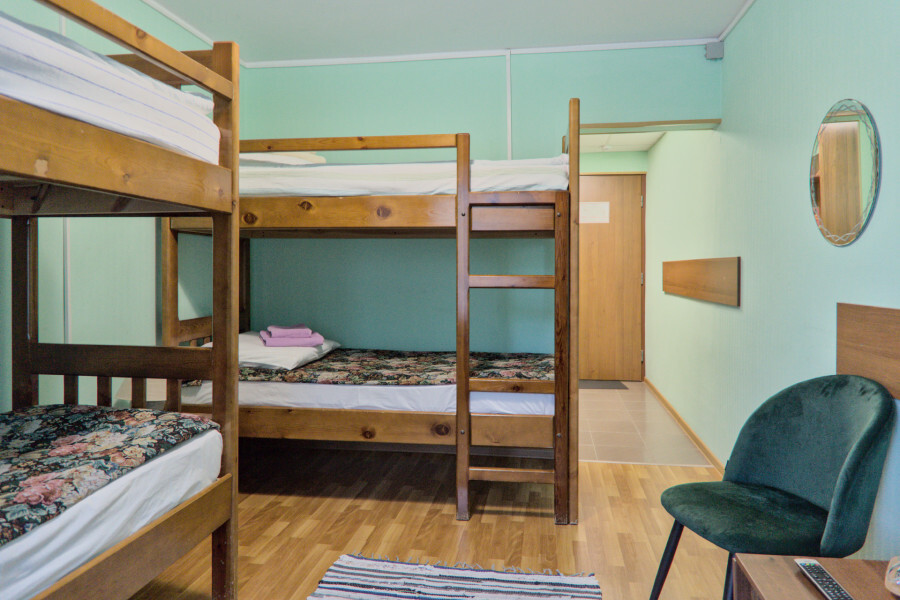 В номере имеется: 2 двухъярусные кровати, ТВ, WI-FI, чайник, посуда.