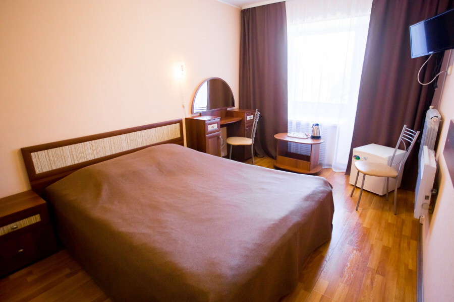В номере имеется: кровать (120х200; 160х200), рабочий стол или туалетный столик, холодильник, ТВ, WI-FI, фен, чайник, посуда.