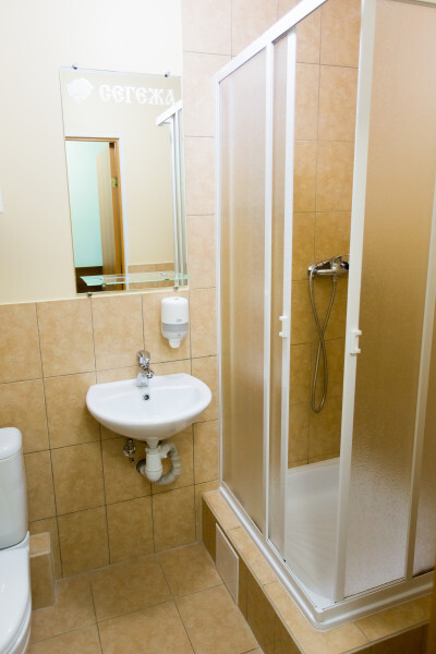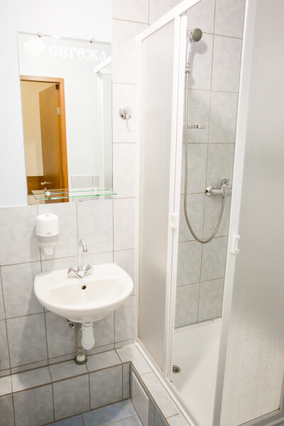 Однокомнатный номер: комната, ванная комната с душевой кабиной.