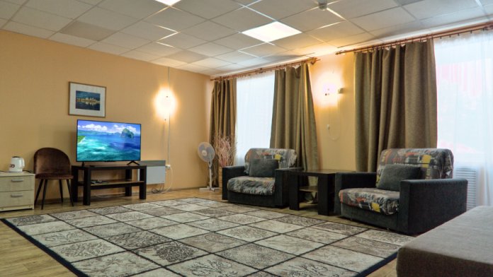 Однокомнатный номер: комната, ванная комната с душевой кабиной. В номере имеется: 2-спальная кровать, кресло-кровать, холодильник, WI-FI, фен, чайник.