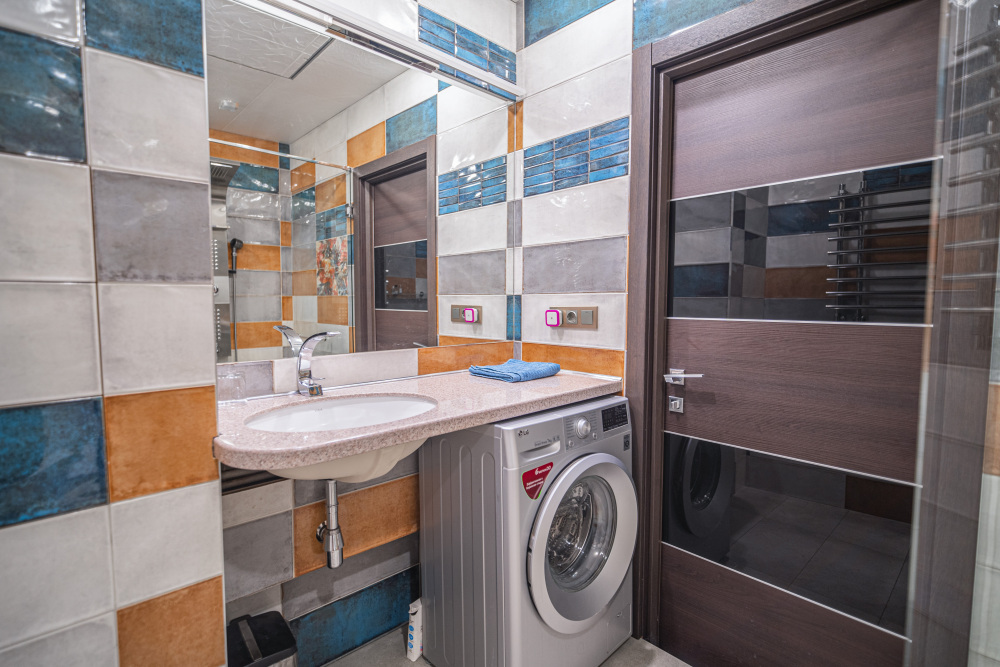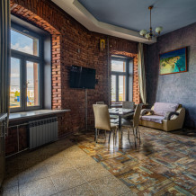 В квартире установлены звукопоглощающие окна, предлагается бесплатная парковка. Из спальни, со второго уровня квартиры, прямо с кровати открывается прекрасный вид на Неву и Тучков мост. В квартире могут комфортно разместиться на ночлег до 5 гостей. На кухне есть все необходимое для приготовления и хранения пищи. В квартире 2 санузла, гладильная доска, утюг, электрический фен, холодильник, посудомоечная машина, кондиционер, стиральная машина, 2 телевизора (один в спальне, второй в столовой), микроволновая печь, электрочайник, кофе-машина. В квартире подключен кабельный высокоскоростной беспроводной интернет.