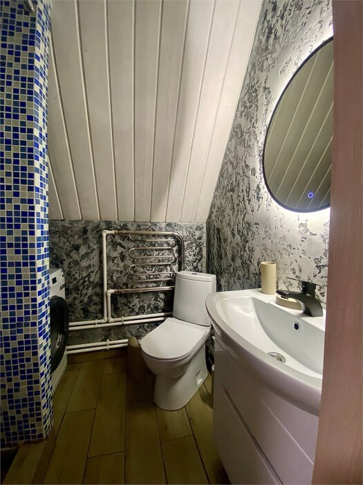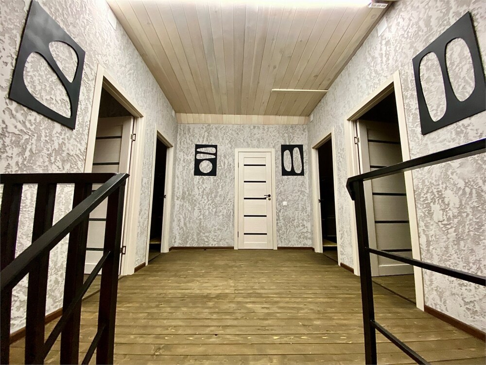Двухэтажный коттедж, с 5 спальными комнатами и общей кухней-столовой и просторной гостиной! Первый этаж с теплым полом! санузел с душевой кабиной на каждом этаже.