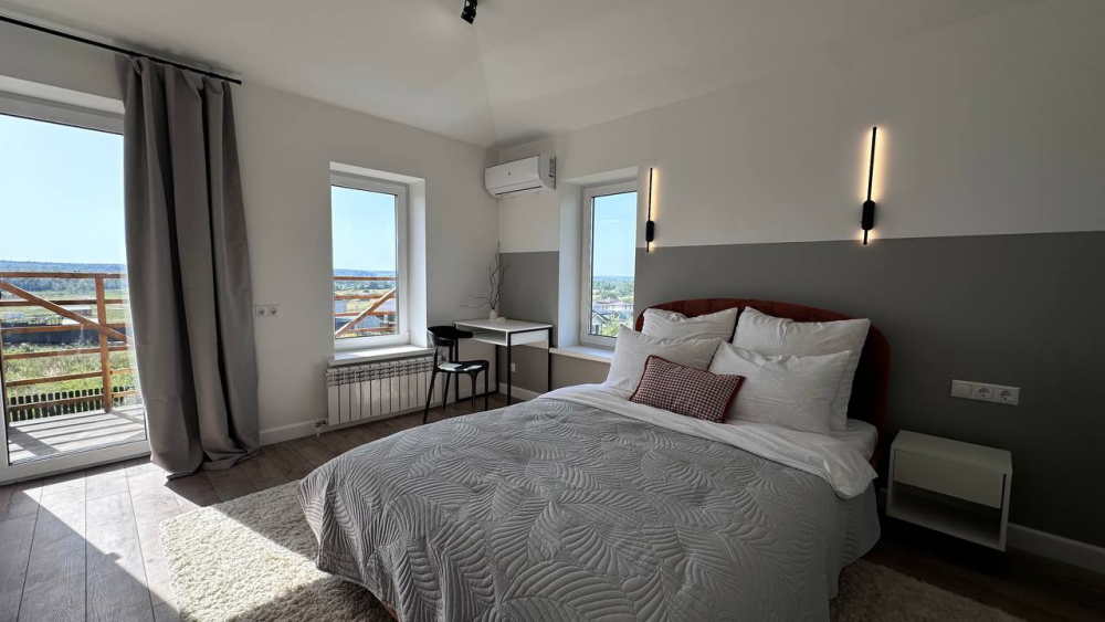 Сдаётся новый каменный дом в престижном коттеджном посёлке на возвышенности. С балкона второго этажа открываются потрясающие панорамные виды на водохранилище идеальное место для вашего отдыха!