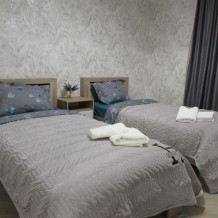 Две раздельные кровати, раскладной диван, Smart TV телевизор, Wi-Fi, полностью оборудованная кухня: плита, чайник, холодильник, вся необходимая посуда и принадлежности. Чистое постельное бельё, утюг, фен.