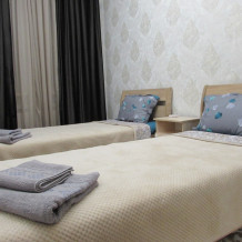 Две раздельные кровати, раскладной диван, Smart TV телевизор, кондиционер, Wi-Fi, полностью оборудованная кухня: плита, чайник, холодильник, вся необходимая посуда и принадлежности. Чистое постельное бельё, утюг, фен, стиральная машина.