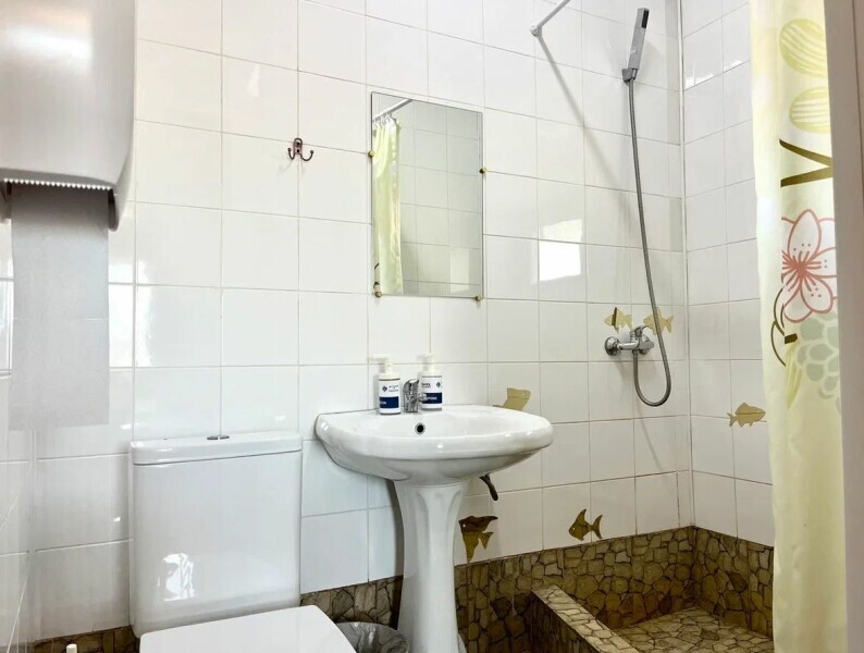 В распоряжении гостей — индивидуальная ванная комната с косметическими принадлежностями и феном.