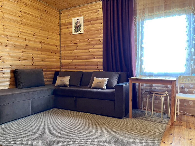 Гостиная зона — диван, который может использоваться как дополнительное спальное место.