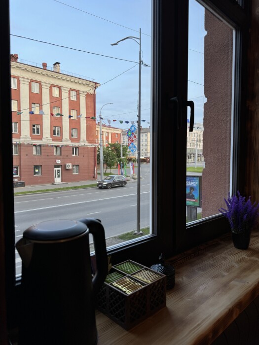 - В номерах нет стиральной машины, однако в шаговой доступности находится круглосуточная прачечная, где можно постирать и высушить вещи (Ленина 21).