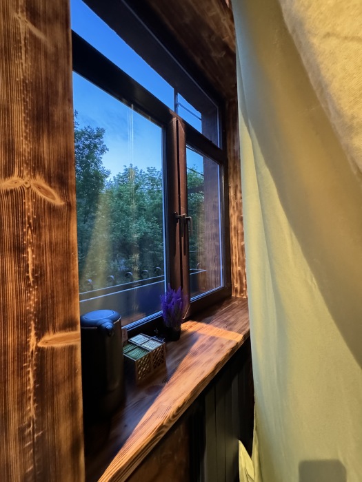 Доступны всего два номера, что придется по душе туристам, которые ценят возможность уединения. В номерах тихо (нет шума поездов), уютно и тепло. Высококачественный ремонт, просторная душевая со средствами гигиены (мыло, шампунь, зубная паста и щетка, туалетная бумага), удобный фен для сушки волос, банные полотенца, полотенца для рук, коврики для ног, тапочки. Круглый стол с венскими стульями, мини-холодильник, чайник, чашки, чайные ложки, бокалы, чай, вода. Большая удобная кровать с ортопедическим матрасом. Качественное белое белье премиум-класса. Высокоскоростной безлимитный Wi-fi. Большой телевизор с функцией Смарт-ТВ (подборка разнообразных фильмов, передач, ТВ-программ). Напольная вешалка, ковер, игра «Дженга», кровать, вазоны для уличных цветов и кованые карнизы выполнены специально для нас в петрозаводской кузнице.