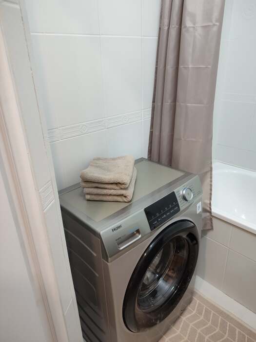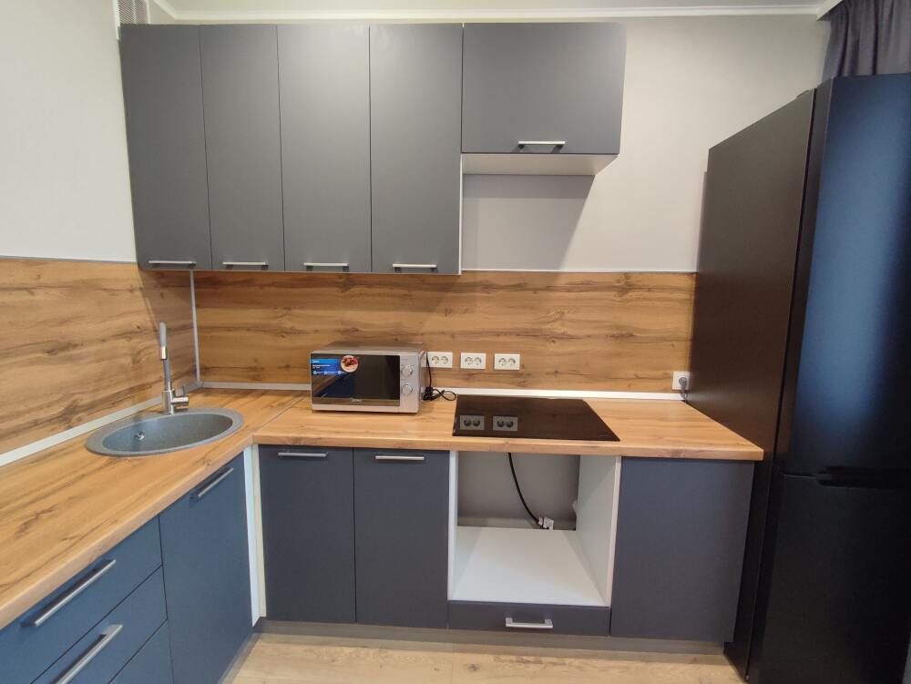 - оборудованная кухня (холодильник, печь СВЧ, электрочайник, посуда, приборы, стиральная машина);
