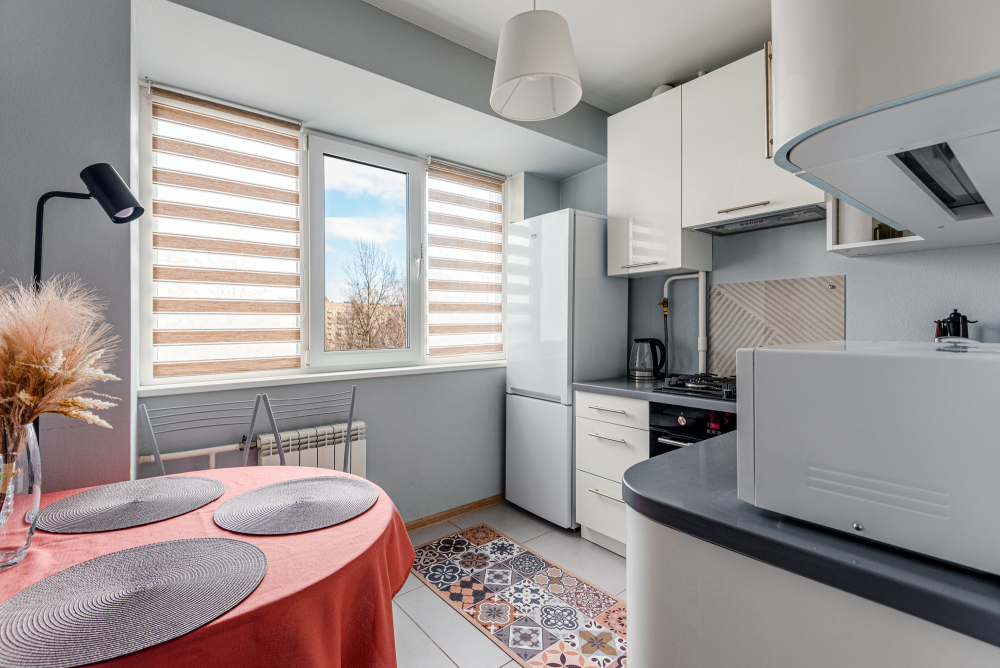 - Полностью оборудованная кухня с посудомоечной машиной.